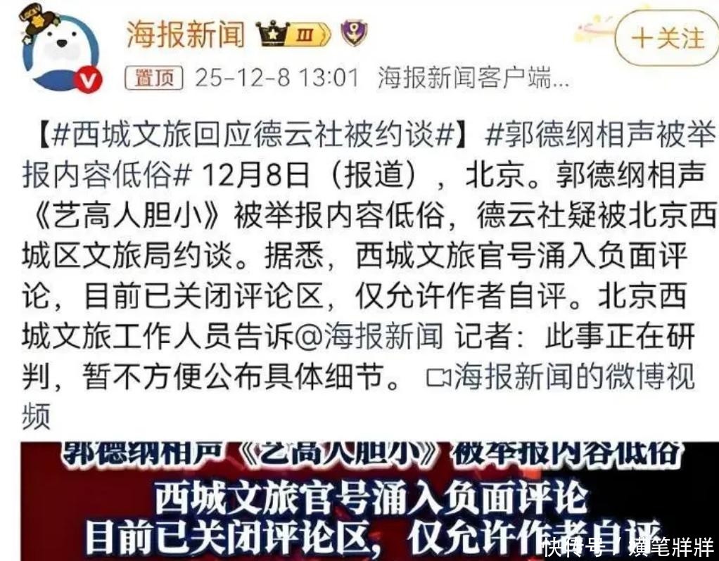 今年12月德云社因部分内容低俗问题被主管部门约谈中国曲协同步划出内容红线。